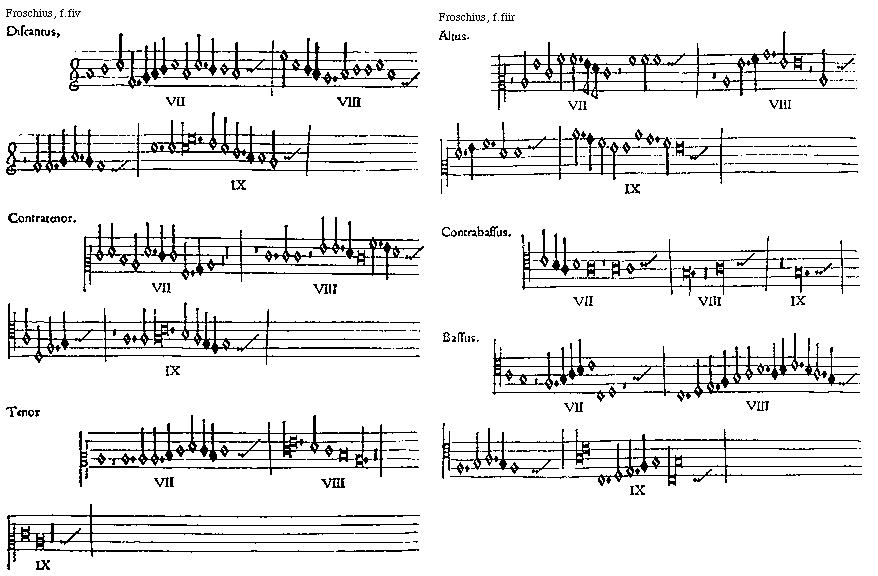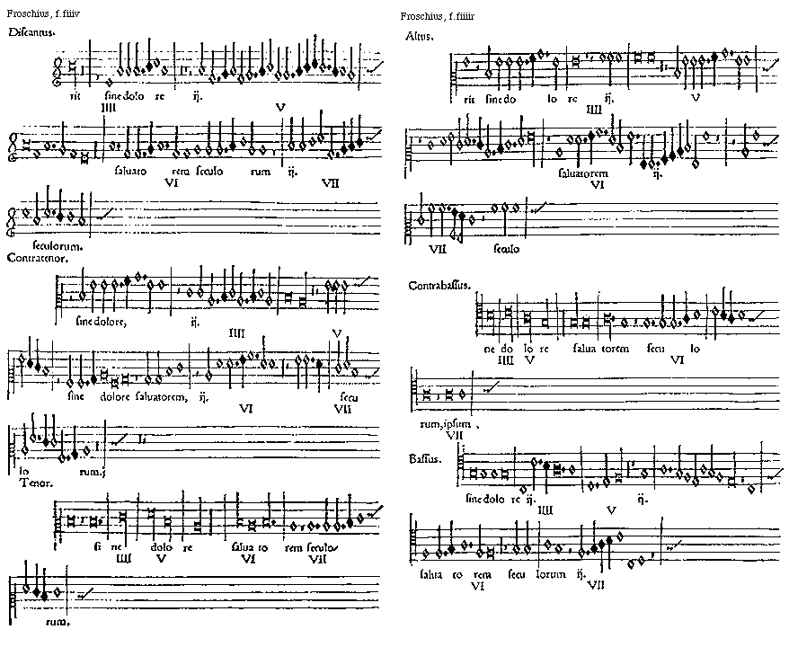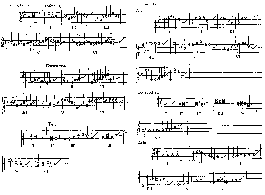 [Froschius, f.eiiiiv; text: Discantus. I, II, III, IIII, V, VI, Contratenor. Tenor.]