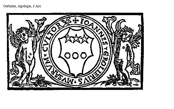 [Gafurius, Apologia, f.Axr; text: Ioannes Grolierivs mvsarvm cvltor]