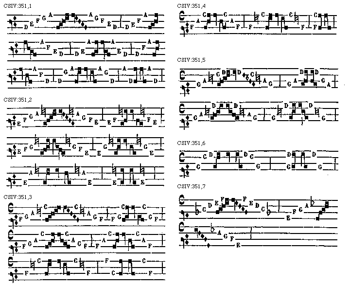[CSIV:351,1; text: D E F G A A G F E D D E F A A F E D D E A A E D D F A A F D D G A A G D A D A D]