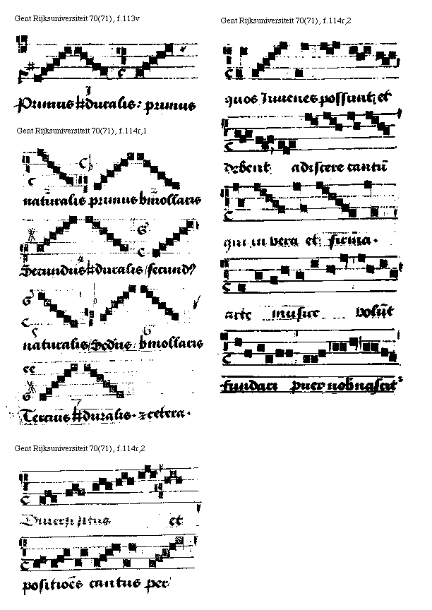 [Gent, Rijksuniversiteit, 70(71), f.114r,2; text: Diuersi situs et positiones cantus per quos Iuuenes possunt et debent adiscere cantum qui in vera et firma. arte musice volunt fundari puer nobis nascitur]