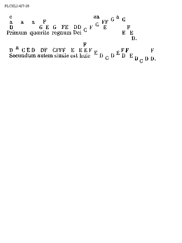 [PLCXLI:427-28; text: C, D, E, F, G, a, Primum quoerite regnum Dei, Secundum autem simile est huic]
