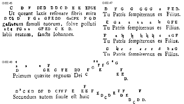 [GSII:45; text: C, D, E, F, G, a, Ut queant laxis resonare fibris mira gestorum famuli tuorum, solve polluti labii reatum, sancte Iohannes.]