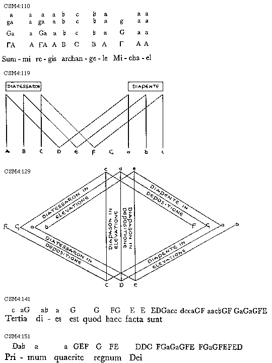 [CSM4:119; text: Diatessaron, Diapente, A, B, C, D, E, F, G, a, b, c]