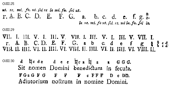 [GSII:25; text: [Gamma]. A. B. C. D. E. F. G. a. b. c. d. e. f. g. aa. ut. re. mi. fa. sol re. la mi. sol ut. la re. fa ut. mi la. sol la. ]