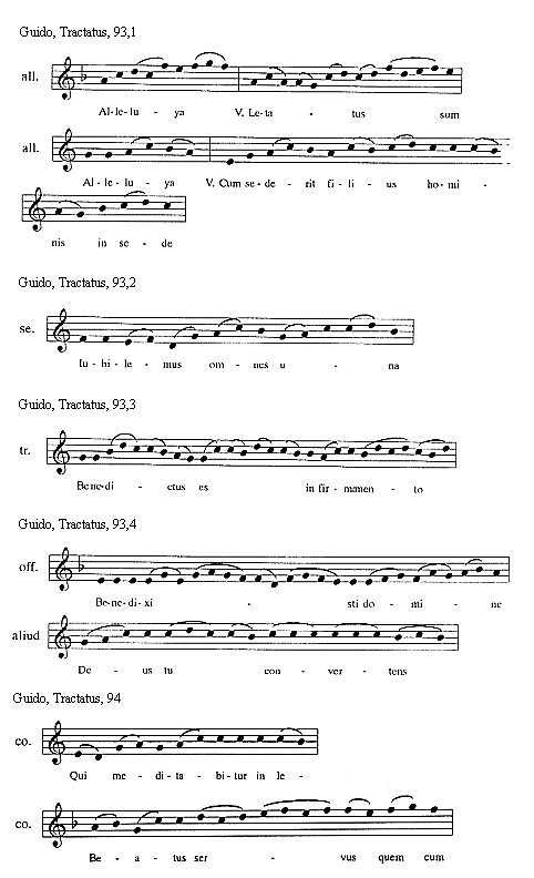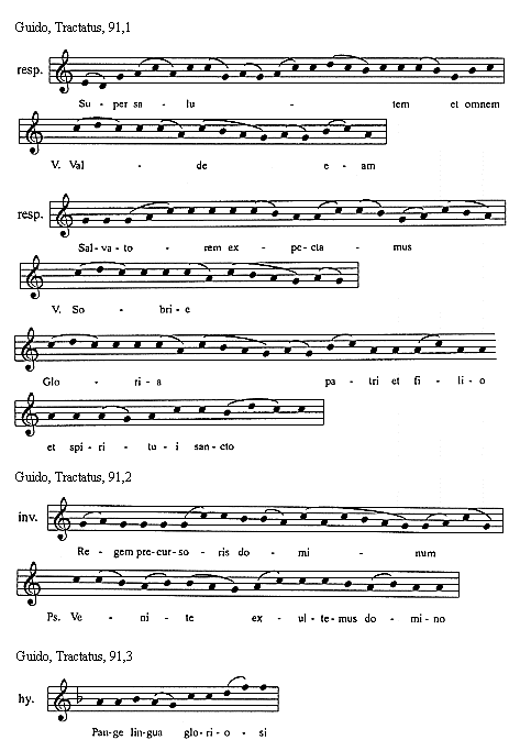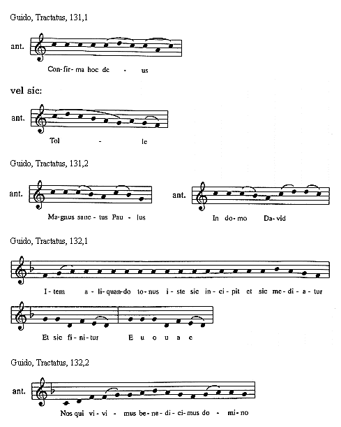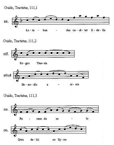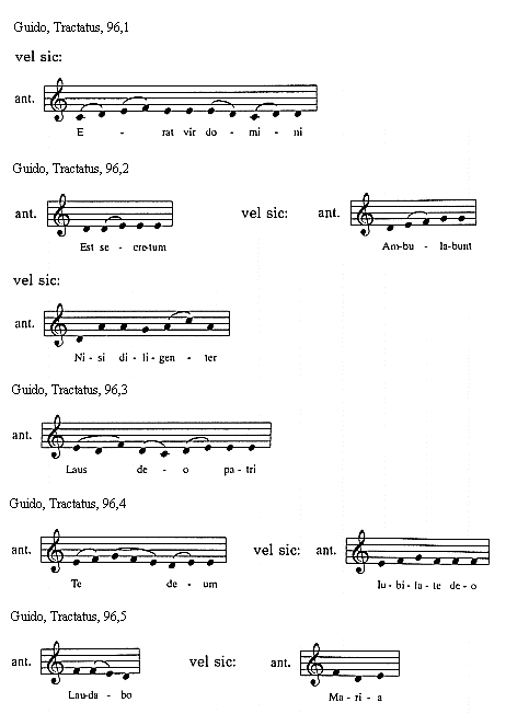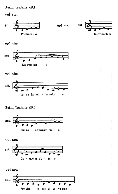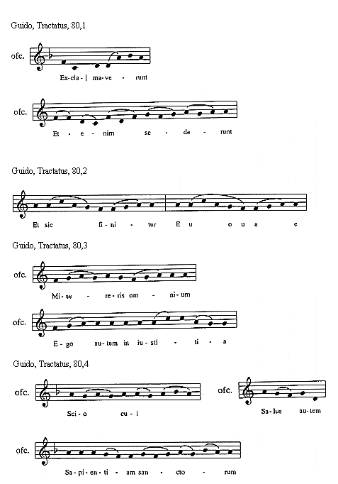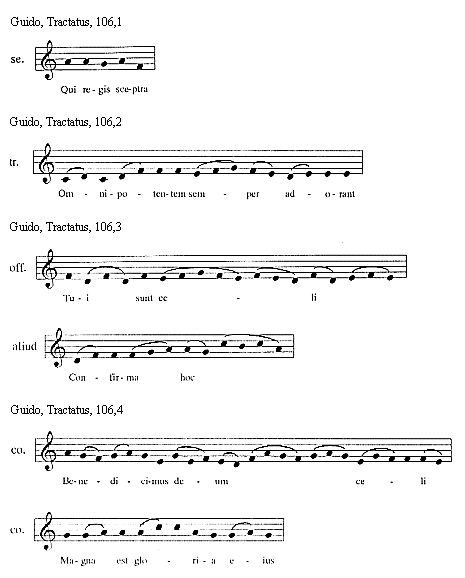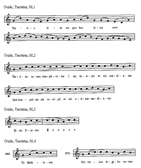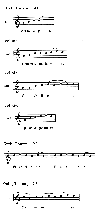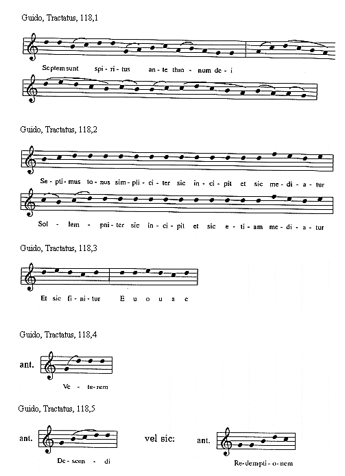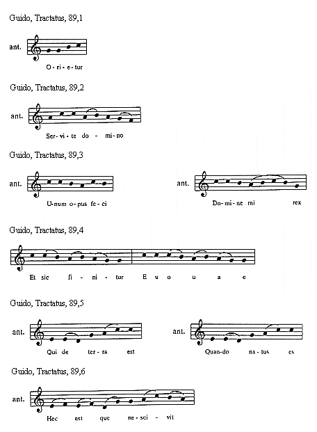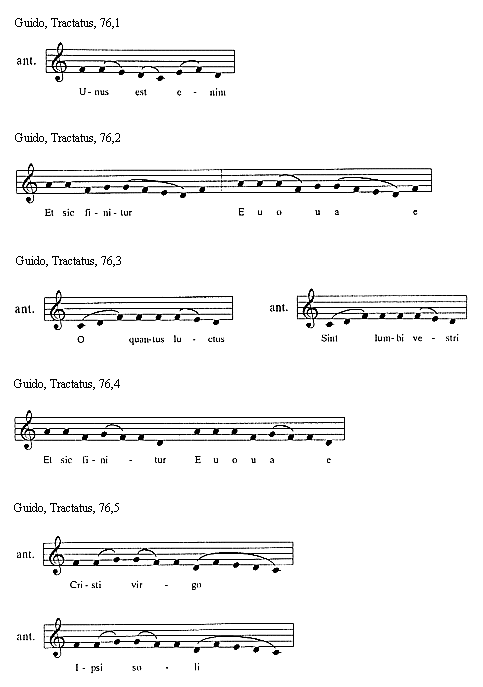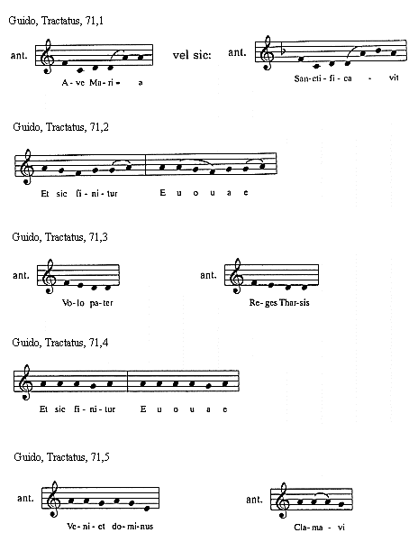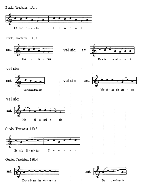 [Guido, Tractatus, 114,3; text: Sextus tonus in officiis sic incipit et sic mediatur, Et sic semper finitur, Euouae]