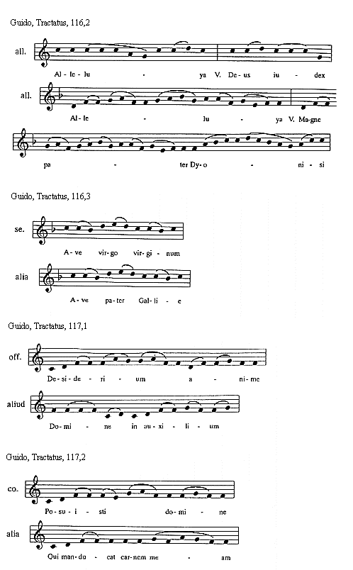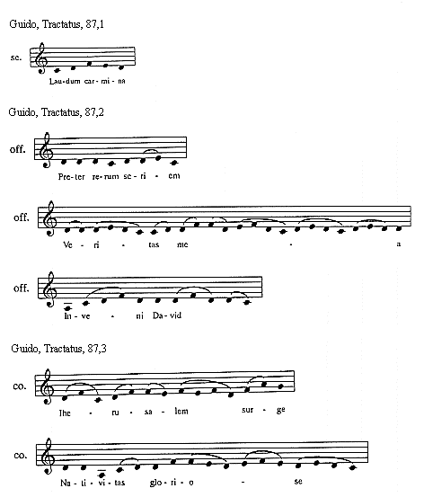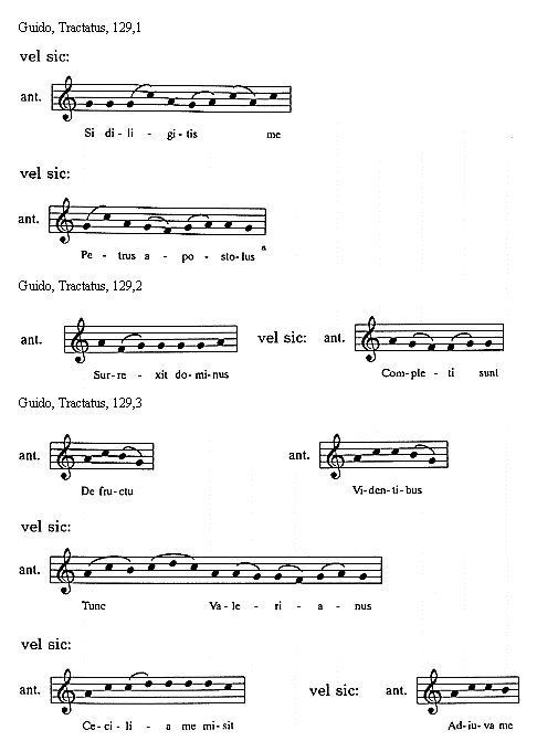 [Guido, Tractatus, 130,2; text: antiphona, Dominus, vel sic: Data sunt ei, Circundantes, Veritas de terra, Hodie scietis]