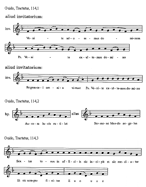 [Guido, Tractatus, 108,3; text: invitatorium, Dominum qui fecit nos, Psalmus, Venite exultemus domino]