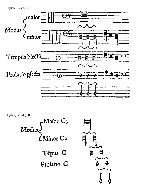 [58][Heyden, De arte, 58; text: Modus Maior, Minor, Tempus, Prolatio]