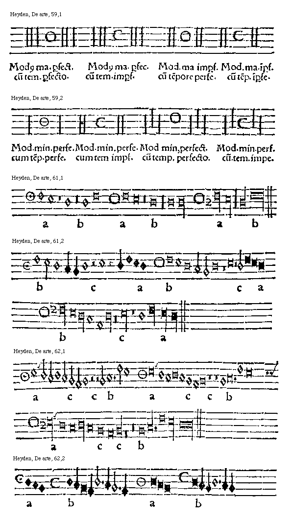[Heyden, De arte, 57; text: Modus major, minor, Tempus perfectum, Prolatio perfecta]
