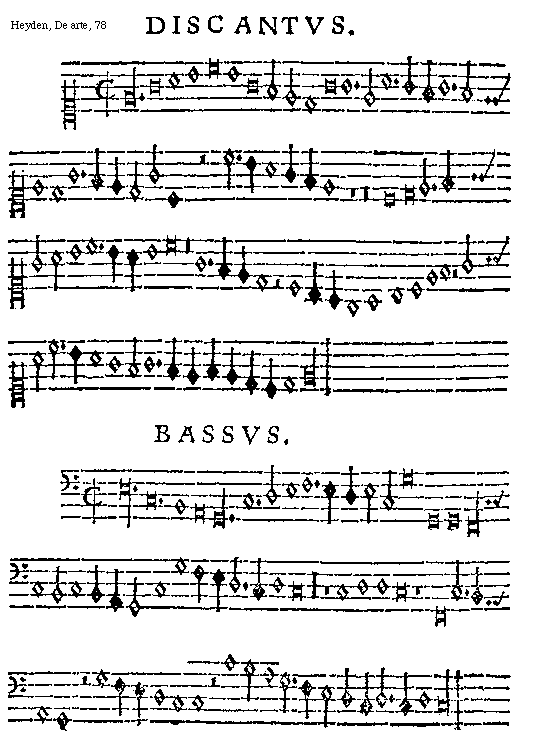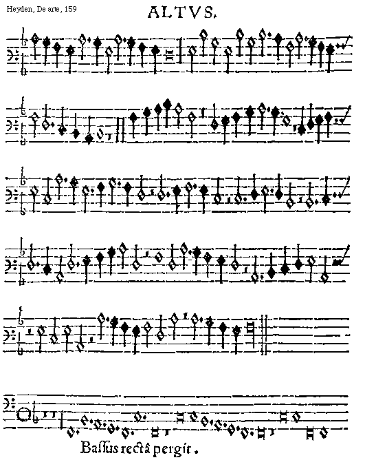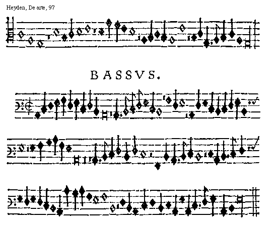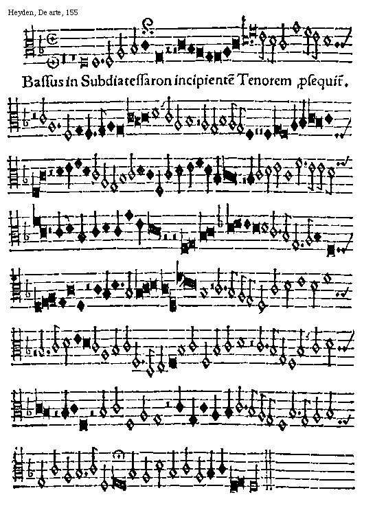 [155][Heyden, De arte, 155; text: Bassus in Subdiatessaron incipientem Tenorem prosequitur.]