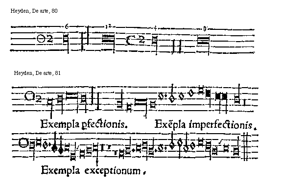 Nunc antequam Mensurae species singillatim tradere incipiam, operae precium esse uidetur, docere de imperfectione ea, quae in signis perfectis frequentissime contingit. Quandoquidem illa eadem, et communis est Prolationi, Tempori, ac utrisque Modis, quamque ob hoc ipsum, quod sub Perfectis signis se habeat, Perfectionis imperfectionem uocare libet.
