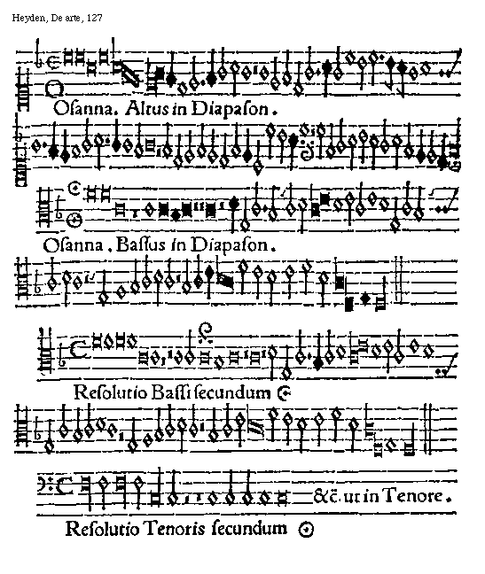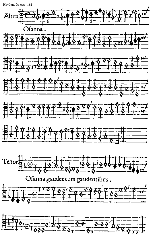 [161][Heyden, De arte, 161; text: Altus. Osanna. Tenor, Osanna gaudet cum gaudentibus.]