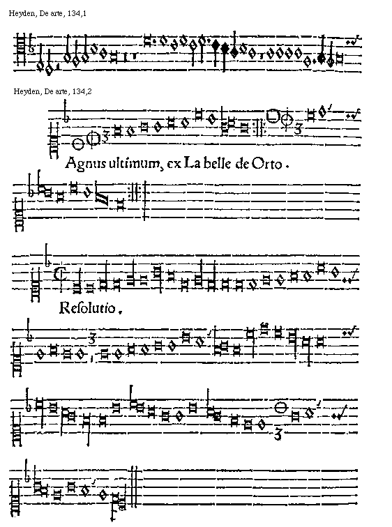 [Heyden, De arte, 134,2; text: Agnus ultimum, ex La belle de Orto. Resolutio.]