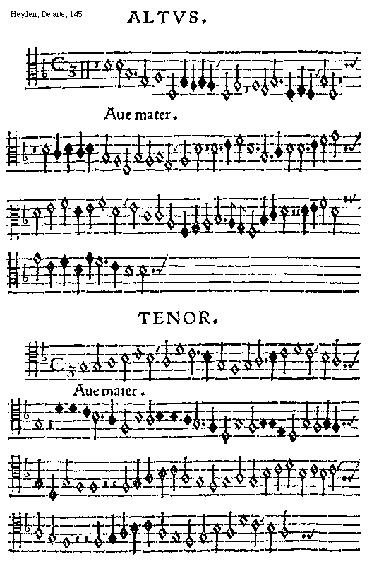 [145][Heyden, De arte, 145; text: ALTVS. Aue mater. TENOR.]