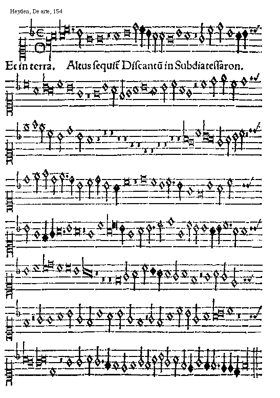 [Heyden, De arte, 154; text: Et in terra. Altus sequitur Discantum in Subdiatessaron.]