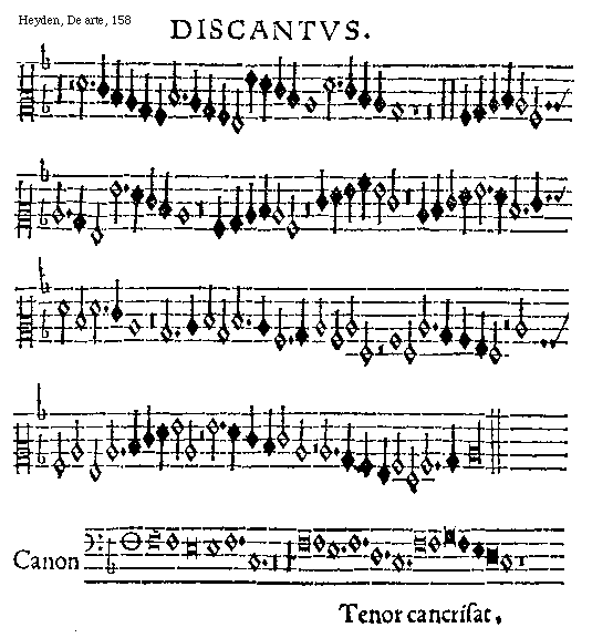 [158][Heyden, De arte, 158; text: DISCANTVS. Canon, Tenor cancrisat.]