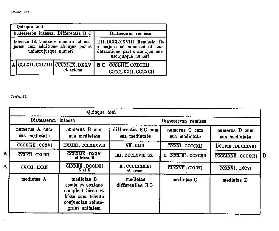 [169]Similiter et harmonia tonorum parium secundum regulas quidem communes extendit se ad IX notas, secundum autem mixtas regulas similiter ad notas IX ut plurimum se extendit. Non igitur solum unus cantus, sed duo, ut demonstrabitur, totam melodiam uniuscujusque toni naturaliter constituunt.