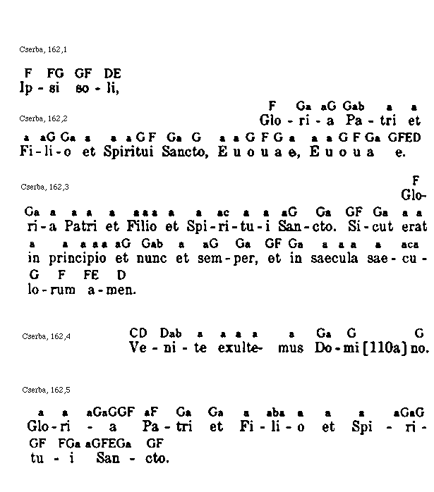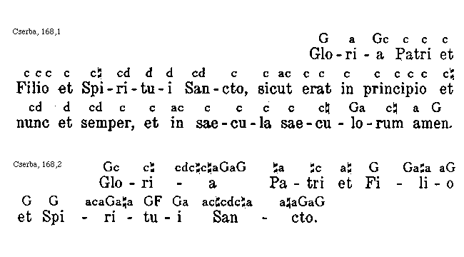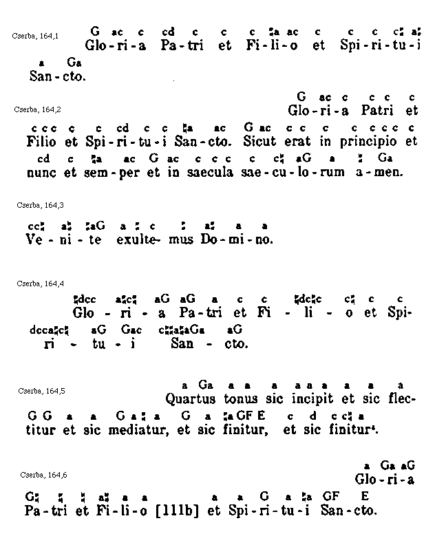 [Cserba, 162,5; text: Gloria Patri et Filio et Spiritui Sancto, a, G, F, b, E]