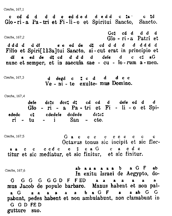 [Cserba, 167,1; text: Gloria Patri et Filio et Spiritui Sancto, c, d, e, [sqb], a]