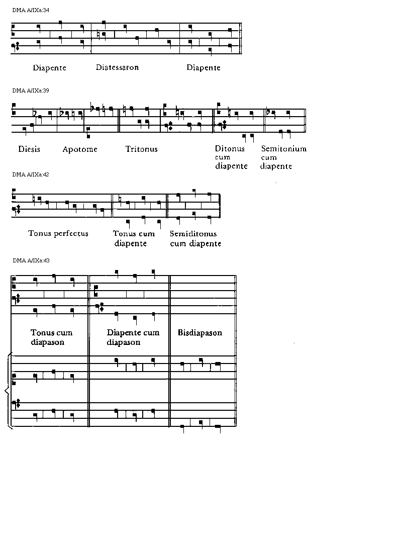 [DMA A/IXa:39; text: Diesis, Apotome, Tritonus, Ditonus cum diapente, Semitonium cum diapente]