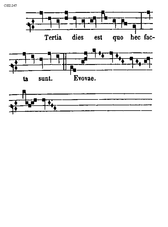 [271]Sic igitur tactus cantus potest finiri in voce tertia C, in sexta F, in septima G, quia soni illi duobus pariter ascendunt tonis, si neuma et in aliis locis multis monocordi posset dicta antiphona notari et decantari; in quantum autem terminatur in voce tertia C, vel in sexta F, quinti vel sexti, sed potius sexti quam quinti. Sed cum terminatur in septima G, octavi posset etiam poni exemplum de multis cantibus qui non ascendunt ultra quartam, vel quintam, qualiter in distinctis monocordi locis possunt notari et decantari. Ex dictis patet quod similitudinem inter voces distinctas arguit similis tonorum et semitoniorum dispositio quantum ad dyapente et dyatessaron species; dissimilitudinem vero dissimilis ex his etiam confirmantur aliqua que supradicta sunt capitulo de vocum affinitate.