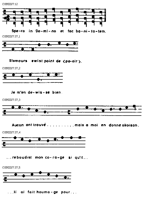 [8]sonantur voces. Reponitur autem talis cantus sub mensurabili quia in eo locum habet discantus et requirit distinctas voces simul prolatas quae ab uno et eodem simul proferri non possent.