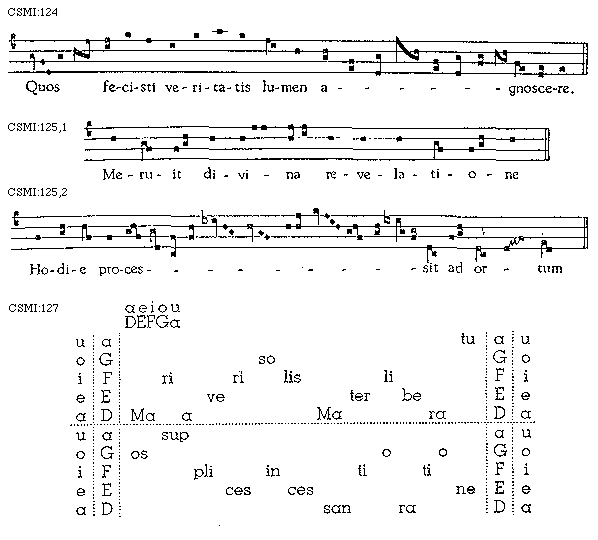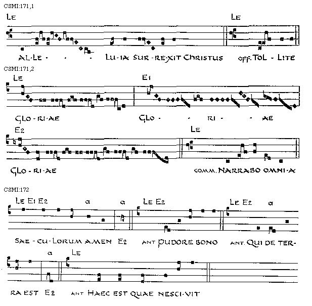 [CSMI:171,2; text: Le, E1, E2, Gloriae, communio Narrabo omnia.]