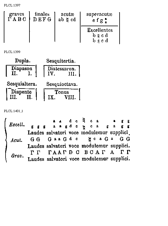 [PLCL:1419-20; text: [Gamma], A, B, C, D, E, F, G, a, b, [sqb], c, d, e, f, g, aa, [sqb][sqb], raro, libere, Modi, I, II, III, IIII, V, VI, VII, VIII]