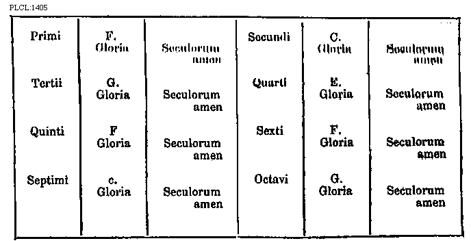[1405][PLCL:1405; text: Primi, Secundi, Tertii, Quarti, Quinti, Sexti, Septimi, Octavi, C. E. F. G. c. Gloria, Seculorum amen]