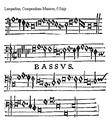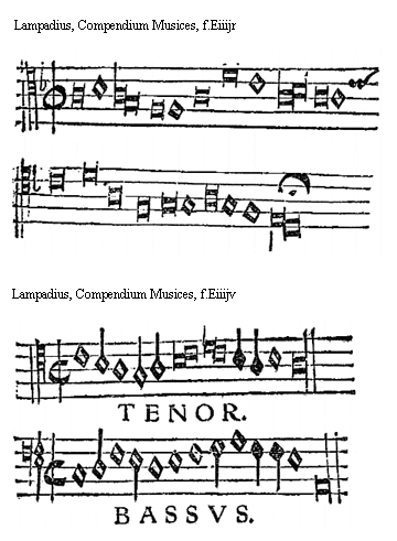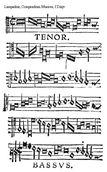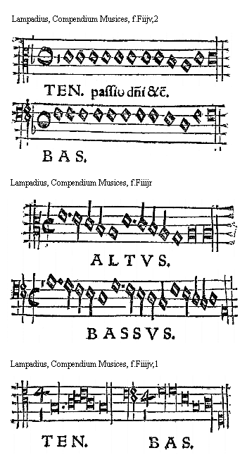 [Lampadius, Compendium Musices, f.Fiijv,2; text: TENOR. BASSVS. passio domini et cetera]