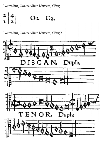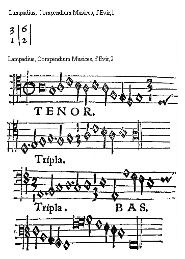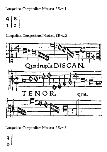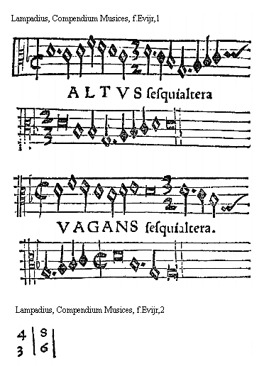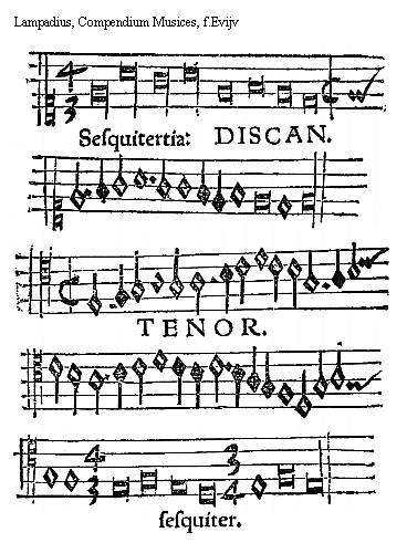 [f.Eviijr][Lampadius, Compendium Musices, f.Eviijr,1; text: 5, 4, TENOR Sesquiquarta. BASSVS.]
