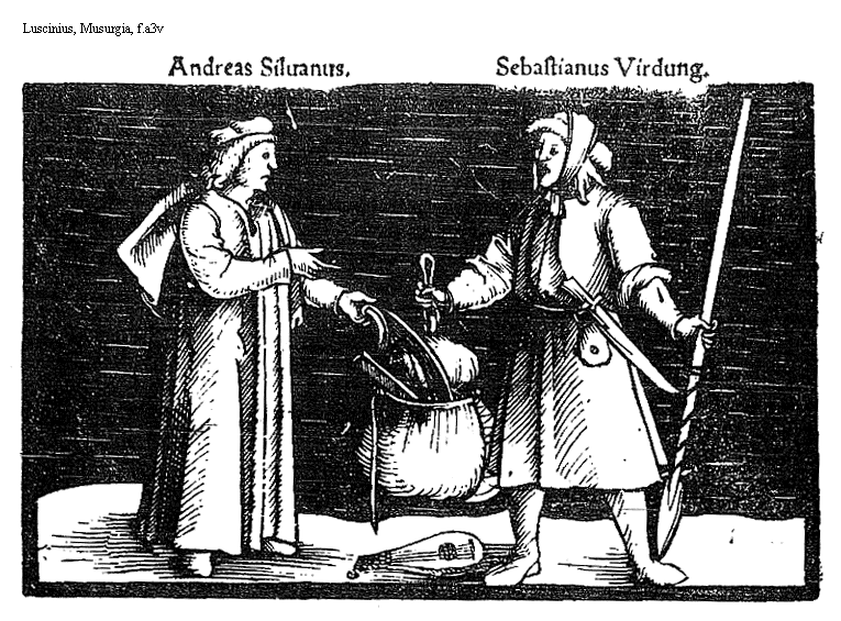 [f.a3v][Luscinius, Musurgia, f.a3v; text: Andreas Siluanus. Sebastianus Virdung.]