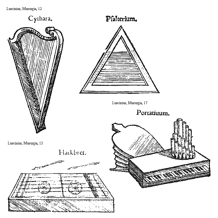 [Luscinius, Musurgia, 13; text: Hackbret.]