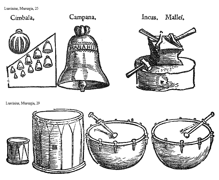 Haec ferme sunt Organa, quae Musica possumus appellare, propter sonitum, quem reddunt, uocalitati magis confinem. Verum commemorare iam obiter lubet, nonnulla esse, quae strepitum ciere possunt magis, quam amicum auribus sonitum edere: inter quae tanto iam plurium consensu primas obtinet timpanum, quo bellatores nostri classicum canunt: aptum certe organum tali ingenio, in quo simul omnia sibi permixta sunt, atque confusa, exulante illic concordia et tranquillitate,