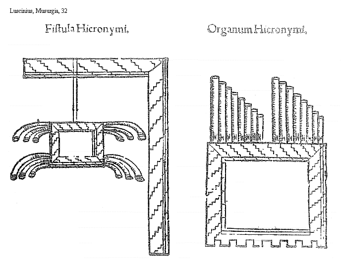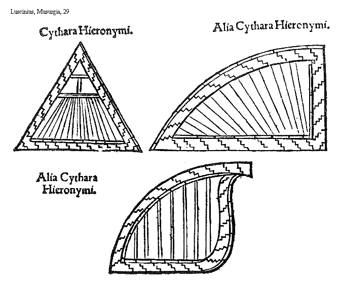 [29][Luscinius, Musurgia, 29; text: Cythara Hieronymi. Alia Cythara Hieronymi.]