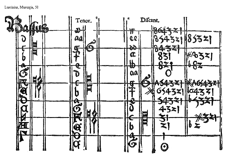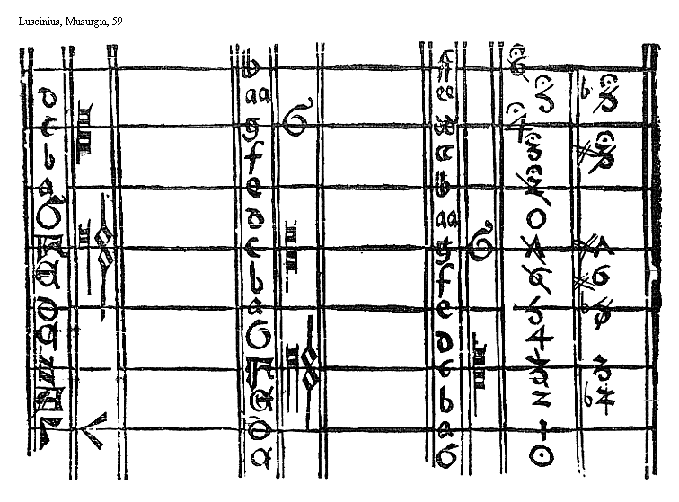 [Luscinius, Musurgia, 10; text: Lutina.]