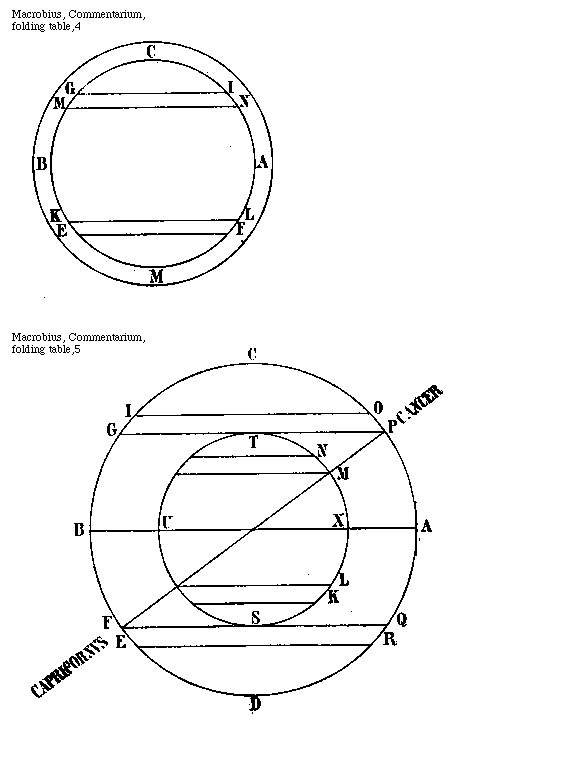 [Macrobius, Commentarium, folding table,5; text: A, B, C, D, E, F, G, I, K, L, M, N, O, P, Q, R, S, T, U, X, Capricornus, Cancer]