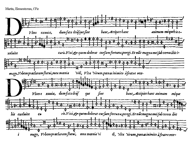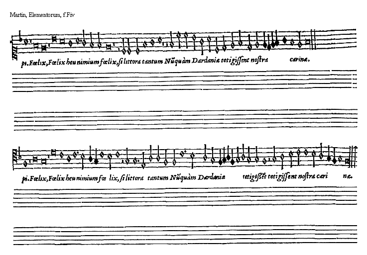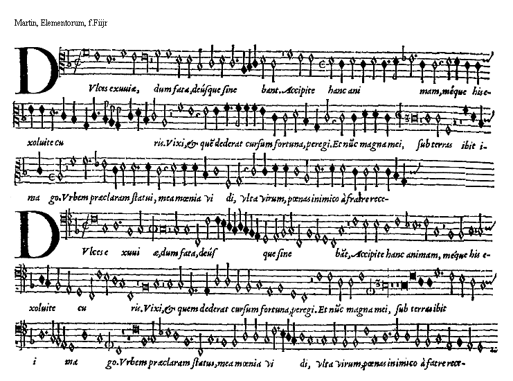 [15]notularum, vox attollenda aut deprimenda. Notulae omnes sese mediatè vel immediatè sequuntur. Posterioris modi paulò facilior quàm prioris videtur esse ratio: vt subiectum docet exemplum.