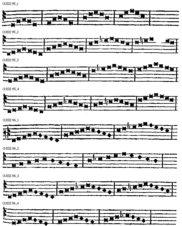 [95]In semiditono vero et tono posita chromaticum diatonicum genus est, ut hic: