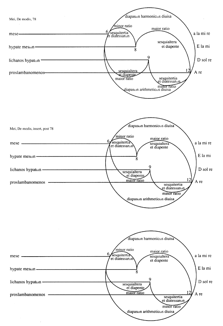 [Mei, De modis, 5; text: acutior, acuta, grauis, grauior, diatessar[Omega]n]