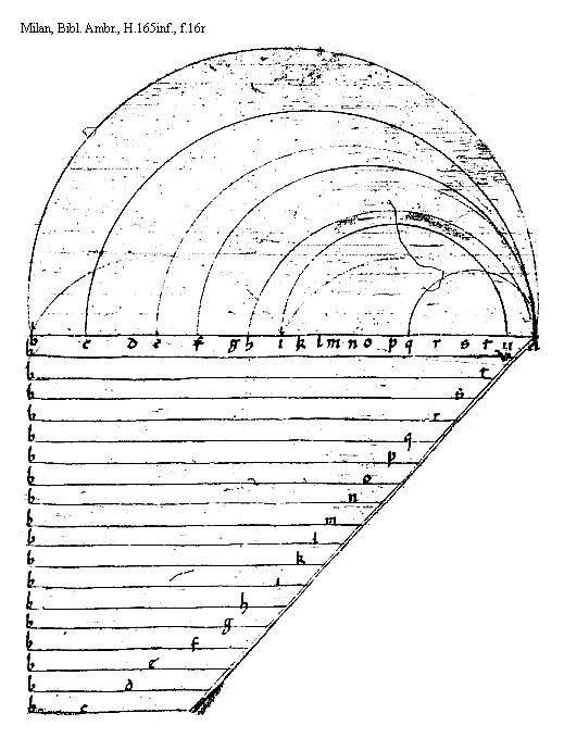 [f.16r][Milan, Bibl. Ambr., H.165inf., f.16r; text: b, c, d, e, f, g, h, i, k, l, m, n, o, p, q, r, s, t, u, a, v]