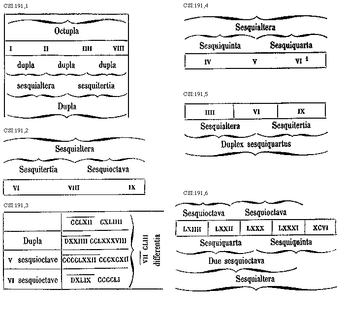 [CSI:191,4; text: Sesquialtera, Sesquiquinta, Sesquiquarta, IV, V, VI]