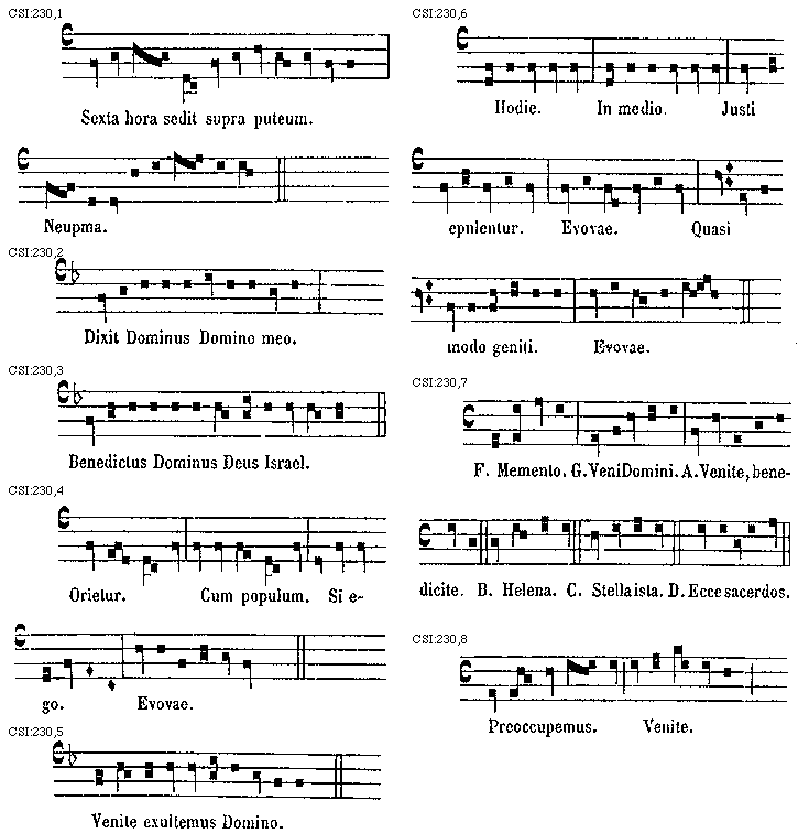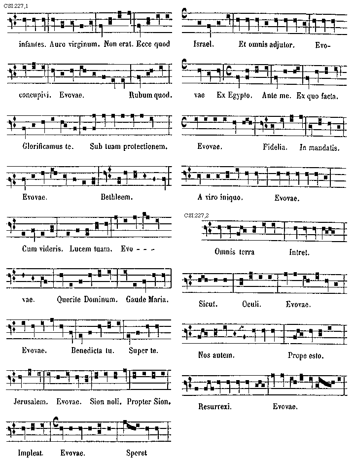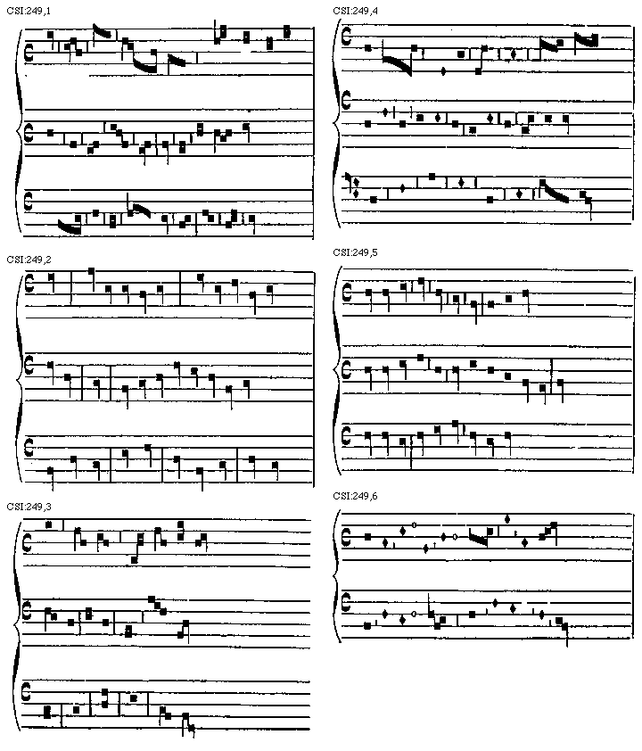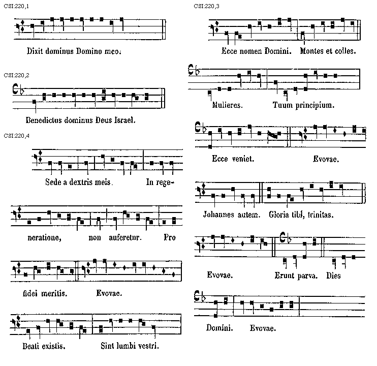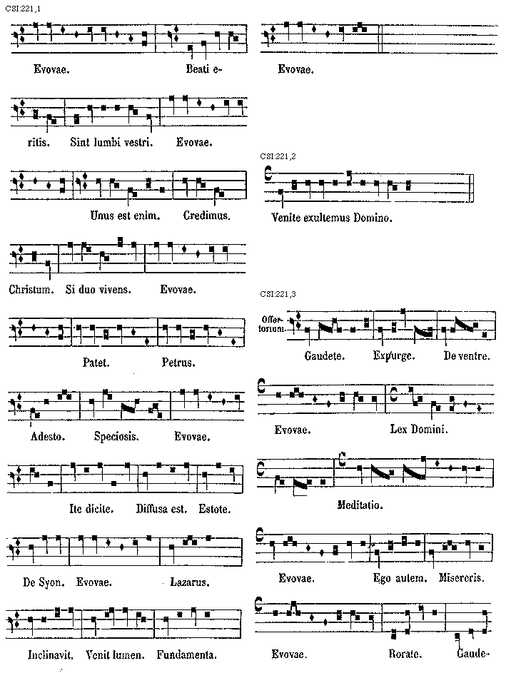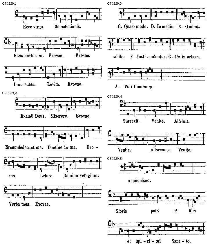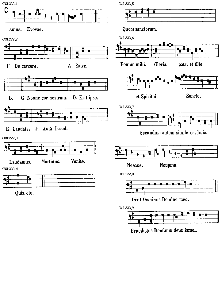 [247]vel tertius ita ut non simul descendat vel ascendat, nisi forte tamen majoris pulchritudinis, et a singulis singulorum cantus recitentur, sic: