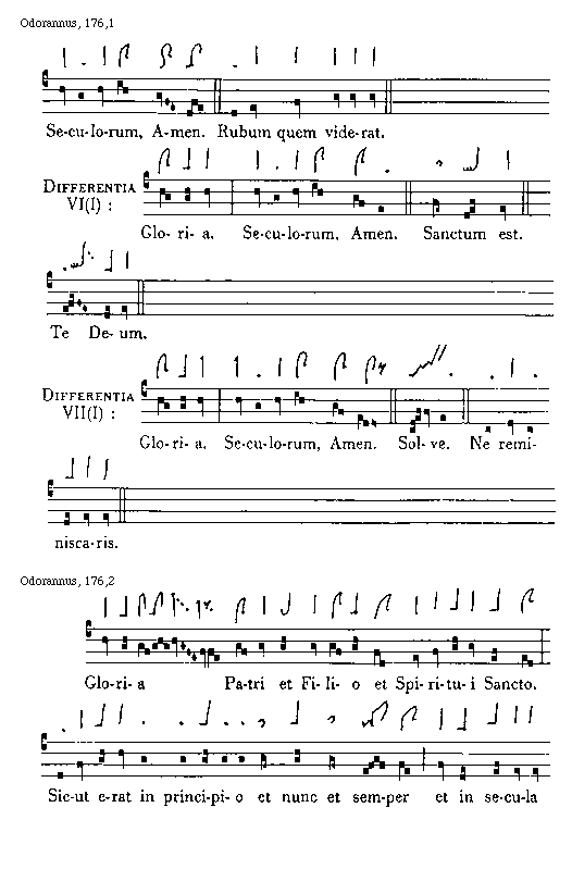 [Odorannus, 180,3; text: Differentia I: Gloria Patri et Filio et Spiritui Sancto. Sicut erat in principio et nunc et semper et in secula]