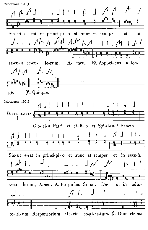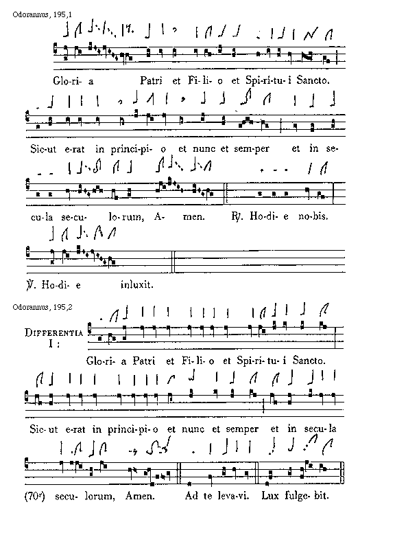 [Odorannus, 193,3; text: Differentia I: Gloria Patri et Filio et Spiritui Sancto. Sicut erat in principio et nunc et semper et in secula]