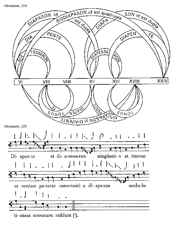 [225][Odorannus, 225; text: Diapente et diatessaron simphonie et intense et remisse pariter consonantie diapason modulationem consonam reddunt.]