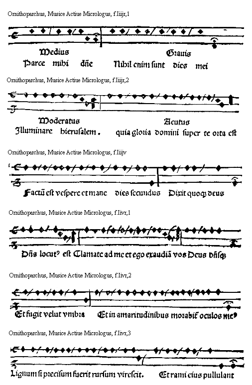 [Ornithoparchus, f.Iiijr,2; text: Moderatus, Illuminare hierusalem. Acutus, quia gloria domini super te orta est]