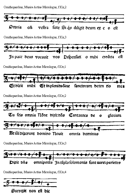 [Ornithoparchus, f.Kir,3; text: In pace deus vocauit vos Dispensati o mihi credita est]