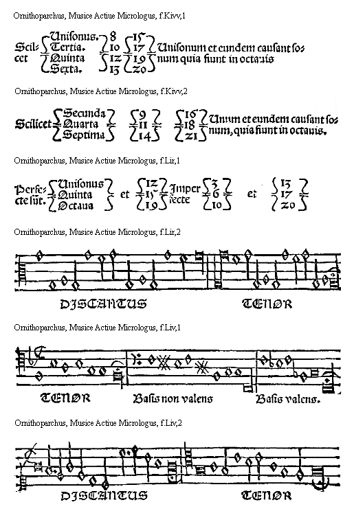 [Ornithoparchus, f.Lir,1; text: Perfecte sunt. Unisonus, Quinta, Octaua, et 12, 15, 19, Imperfecte, 3, 6, 10, et, 13, 17, 20]
