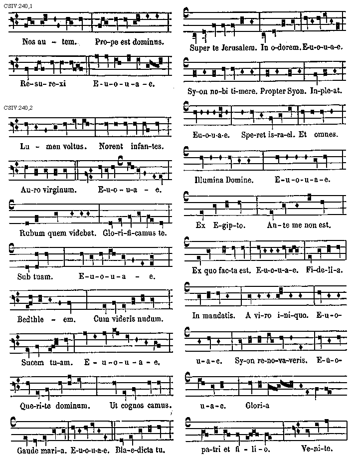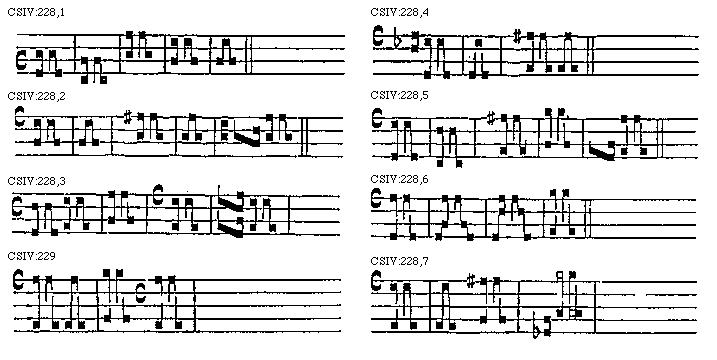 [CSIV:222; text: [Gamma] ut. A re. B mi. E la mi. FF fa ut. G sol re ut. C fa ut. E la. D fa sol re. D la sol. A la mi re. D sol re. C sol fa ut. C sol fa. B fa [sqb] mi. E fa mi. B fa [sqb] mi. A la mi re. G sol re ut. FF fa ut.]